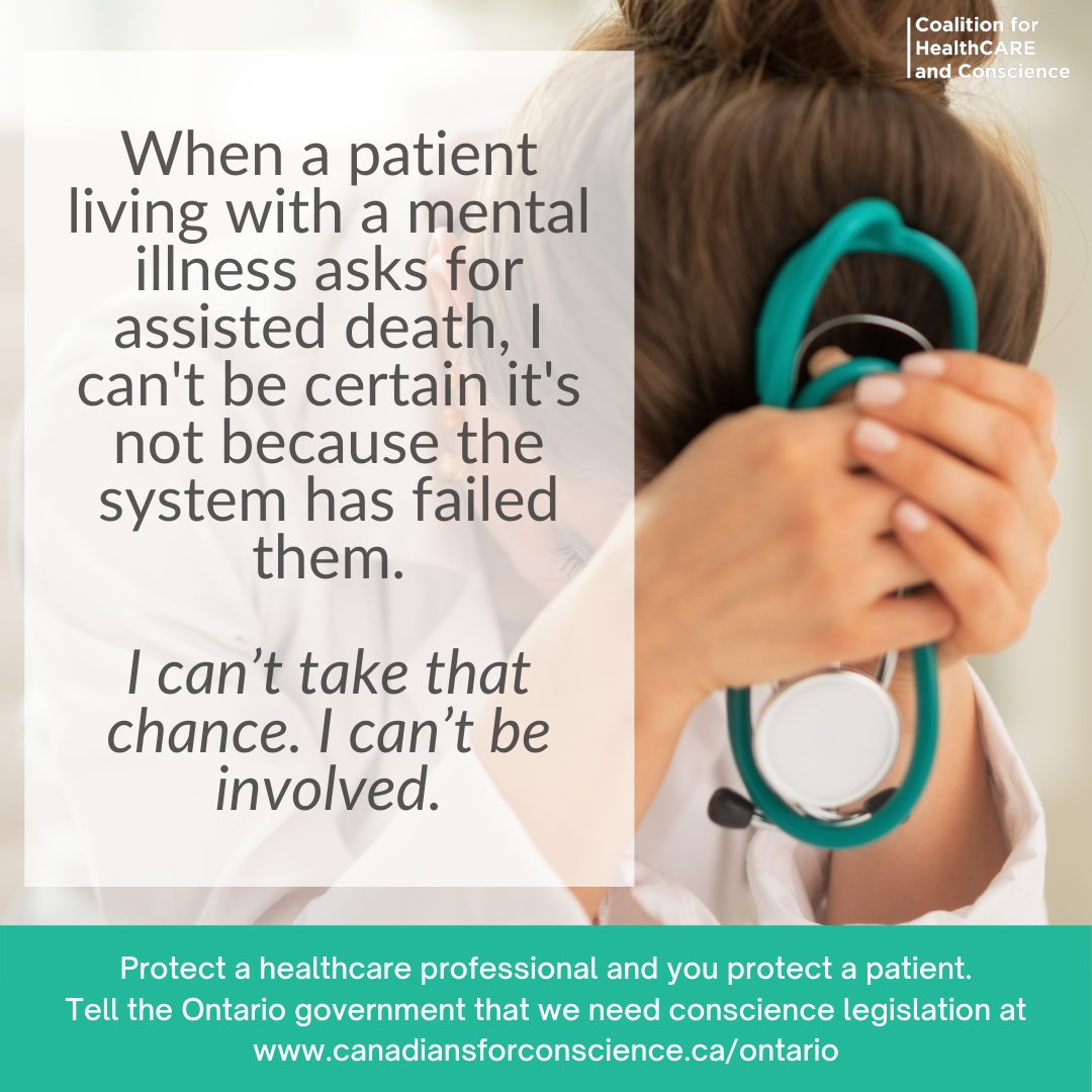Please, go to the Canadians for Conscience website. Watch the video, read the material and learn more. And please, write to your MPP and ask them to protect the conscience rights of healthcare providers in Ontario.