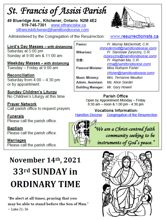 33rd Sunday in Ordinary Time Published on November 13, 2021November 12, 2021 by stfranciskw Like Loading...