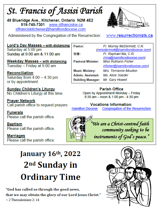 2nd Sunday in Ordinary Time Published on January 15, 2022January 14, 2022 by stfranciskw Like Loading...