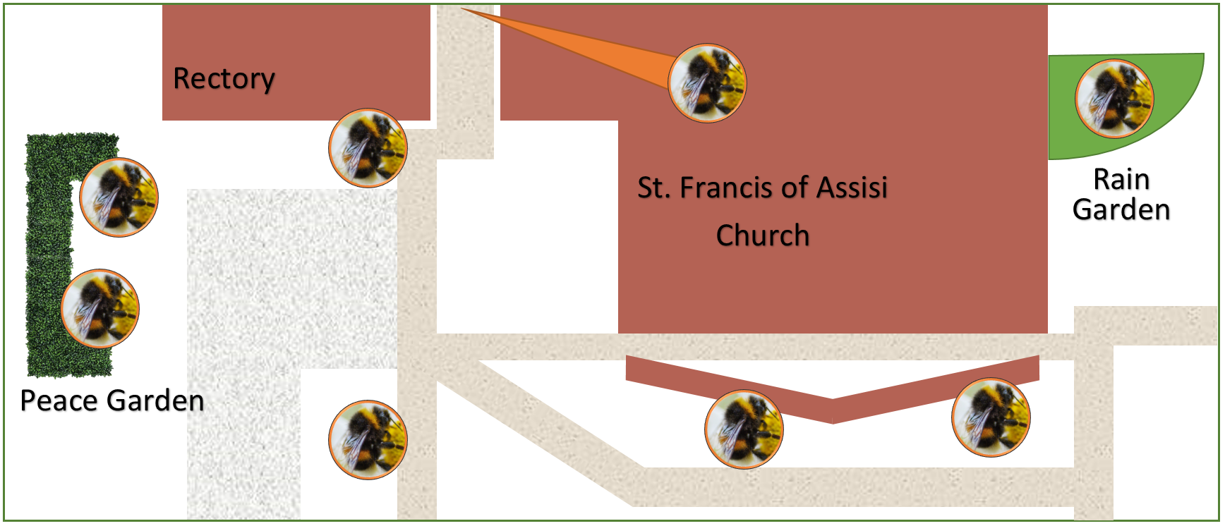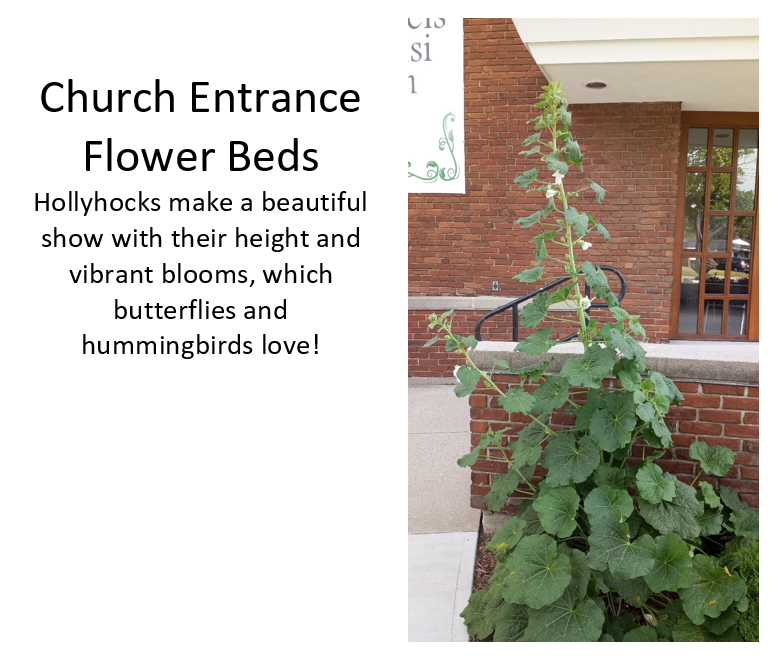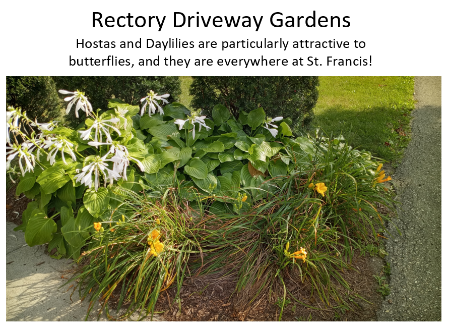 St. Francis of Assisi Parish is blessed to have many beautiful gardens on the grounds, both around the church, the rectory, and even the back parking lot! Many of these gardens give life to perennials flowers which provide essential food for pollinators like butterflies, bees and other insects. We invite you to take a virtual tour of the pollinator plants at St. Francis Church. Click on a Bee symbol below to learn more about the different plants. And contact the parish office to register for the Pollinator Webinar led by Tom Woodcock, a Planning Ecologist, and hosted by our Laudato Si’ Environmental Team on Sat. Feb. 5 at 1:30pm.