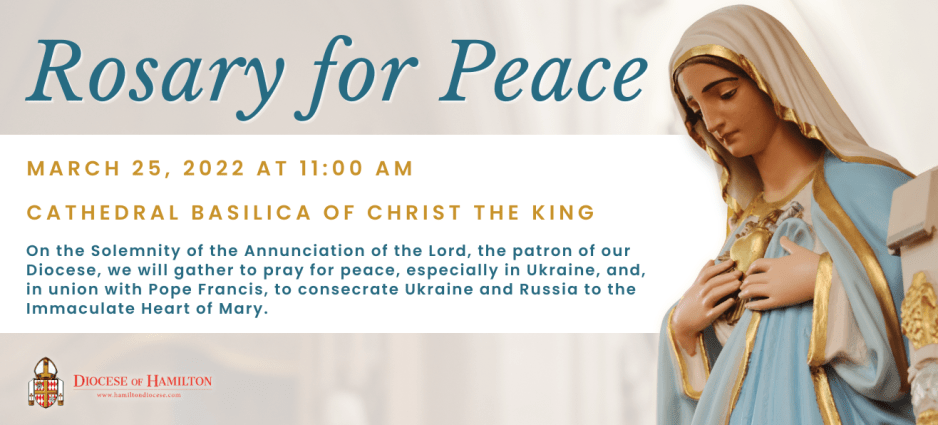 All are welcome to join Bishop Crosby and Bishop Lobsinger at the Cathedral Basilica on Friday, March 25, 2022 at 11:00 a.m. as we pray the Rosary, asking for the intercession of our Blessed Lady, to bring peace to our world, especially in Ukraine.
