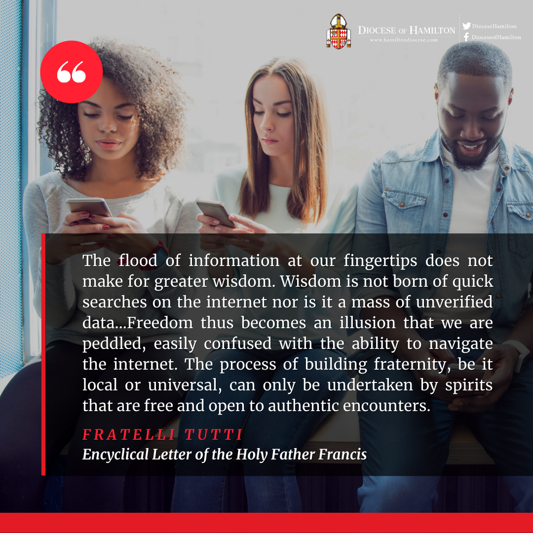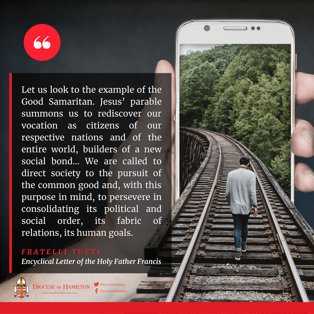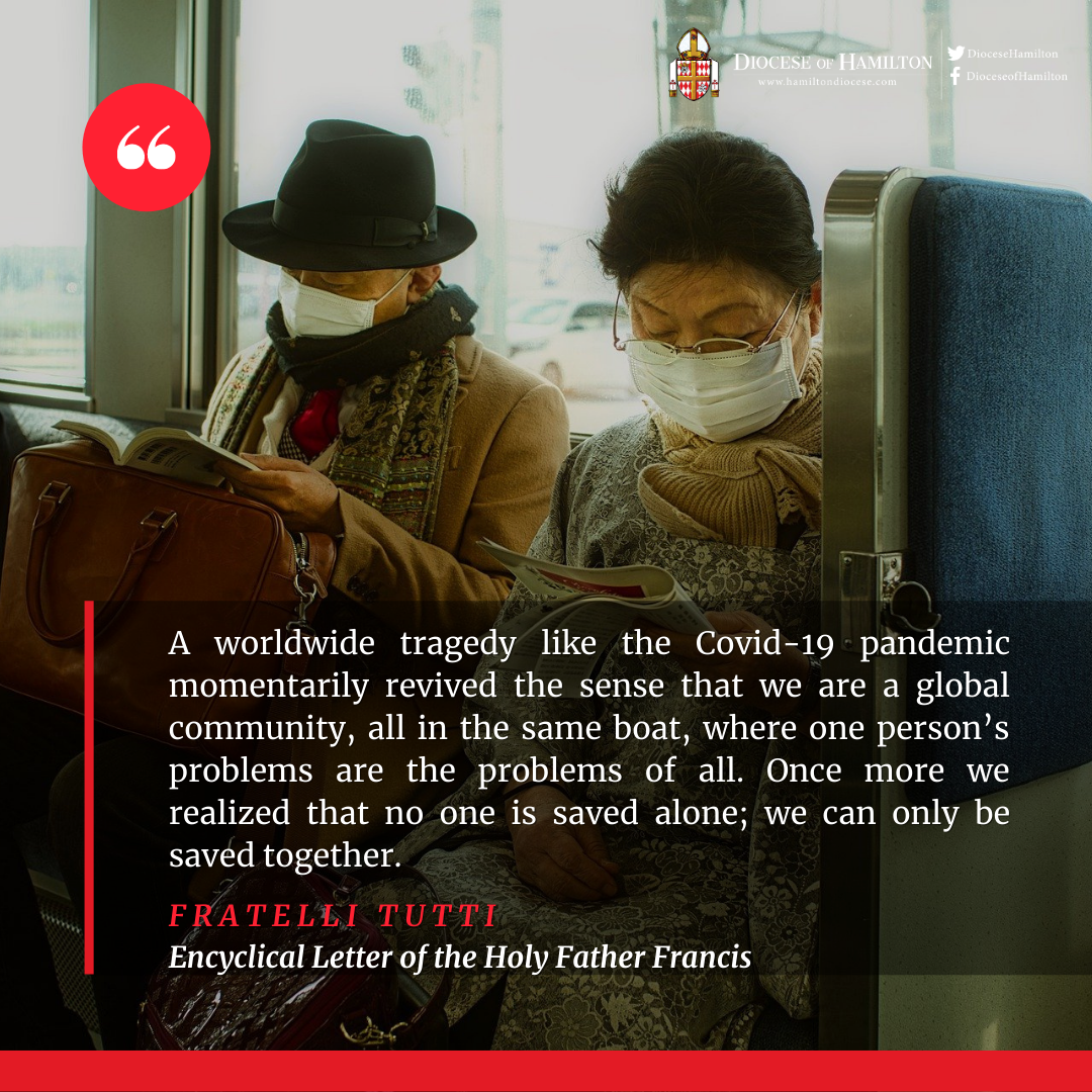 The Catholic Register had an article on Oct. 8, 2020 called Fratelli Tutti: A vision of unity and dignity for all. In this article the author discusses how Pope Francis’ encyclical responds to current events and challenges the church and all humanity to recognize the dignity of each person. “When we read this, we can recognize that it affirms our own dignity and the inviolable rights we all have.”