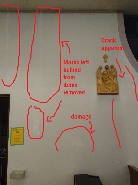 How easy it is to overlook something so basic as lighting! In order to fully enjoy Mass, it’s important to stay on top of this simple requirement so that we all are able to read prayer books and hymnals. The improvements will involve significant lighting updates such as emergency lighting, lighting in the main body of the church and the choir loft, along with parish hall lighting. Upgrading to LED lights will greatly decrease future energy costs while significantly increasing church lighting. Expert opinions from electricians and our building manager indicate that once these lighting improvements are made, all of the flaws in the walls would be very visible. These experts have told us that people would not be happy with this, so painting has become a priority. In order to be financially responsible, the church and vestibule will be repainted while the lighting work is done so as to incur costs such as moving pews and bringing in heavy equipment once only.